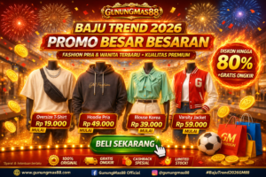 Kalau kamu mengikuti berita fashion terbaru, khususnya promo baju online, nama GUNUNGMAS88 belakangan ramai dibicarakan karena promo besar-besaran yang memadukan tren fashion 2026 dan diskon harga gila. Event promo ini bukan sekadar potongan harga biasa — ia jadi fenomena tersendiri yang menyedot perhatian publik, terutama para pencinta fashion yang ingin tampil up-to-date namun tetap ramah di kantong. Promo ini bahkan sempat dinyatakan sebagai “bikin heboh” oleh publikasi langsung dari platform resmi brand, menunjukkan bahwa antusiasme pasar benar-benar tinggi terhadap program ini.